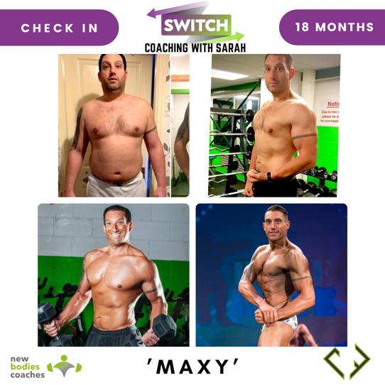 Full time working husband and father of 2, a family man who began The Switch program in January 2020 (left hand picture). Mark aka ‘Maxy’ worked through his SWITCH coached plan through all 3 Coronavirus lock-downs! It just goes to show, if you stick it out, work hard, you really can achieve more than you ever imagined. He hit his first bodybuilding show in July 2021 and came home with 3 trophies! Mark now continues to make further progress for 2022 competitions.